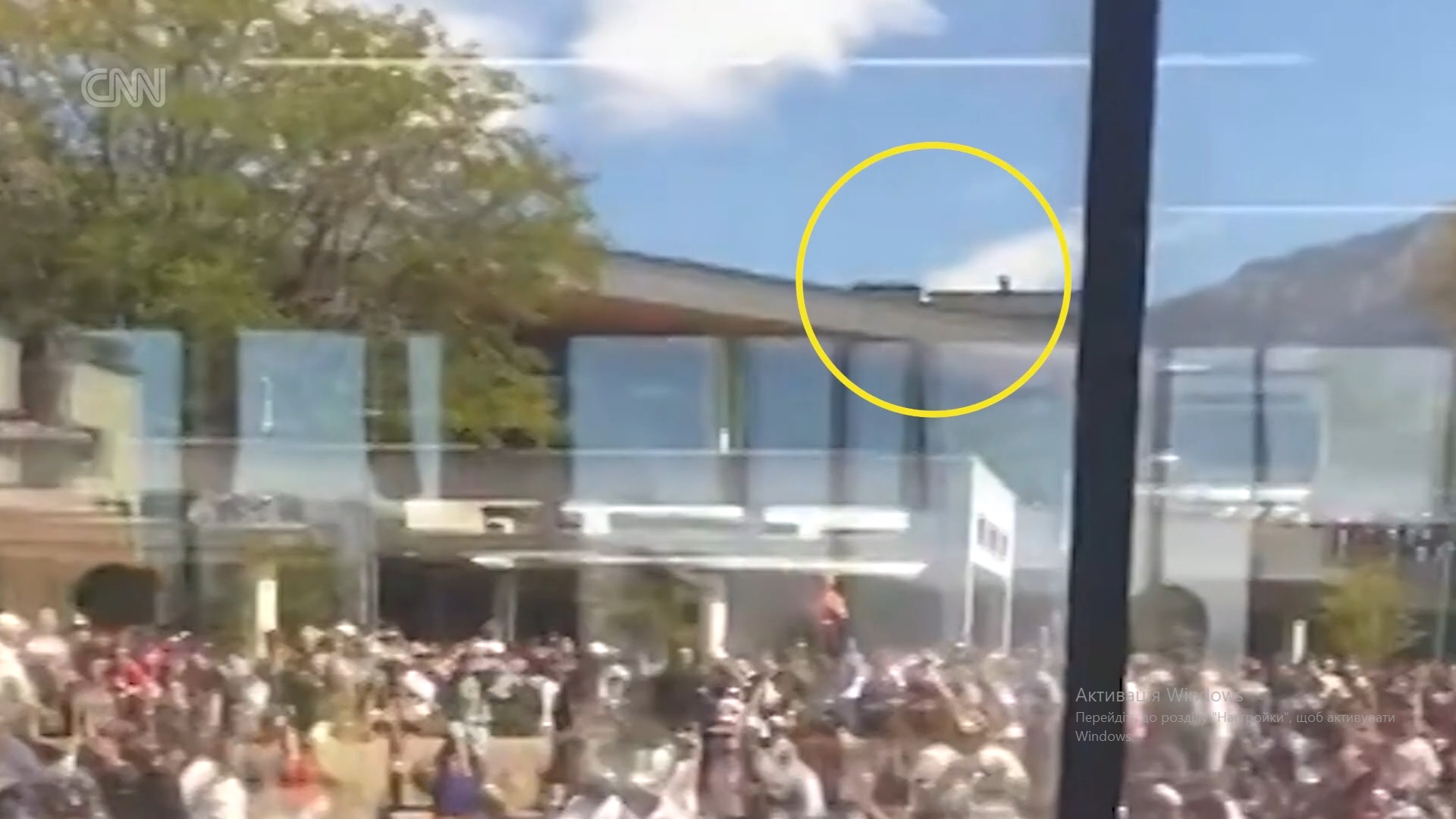 CNN обнаружил предполагаемого злоумышленника на видео с выступления Кирка. Одна из камер успела зафиксировать человека на крыше после выстрела.