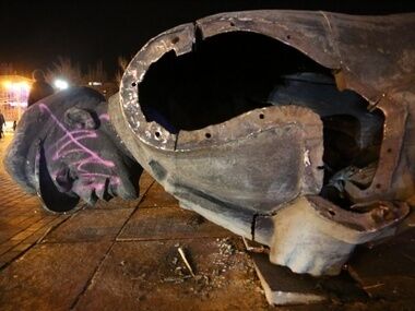 Тем временем в центре и на востоке Украины главные площади многих городов по-прежнему украшали памятники организатору социалистической революции. В начале 2014 года в стране поднялась новая волна "ленинопада". Начало положили киевские активисты, которые 8 декабря 2013 года снесли вождя на Бессарабской площади. С февраля 2014 года в районных и областных центрах активисты Евромайдана разбивали памятники. В некоторых городах и поселках местные власти сами убирали фигуры Ленина, чтобы не раздражать общественность.