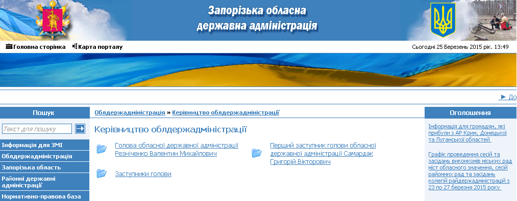 На сайте Запорожской облгосадминистрации Резниченко все еще указан в качестве главы области.