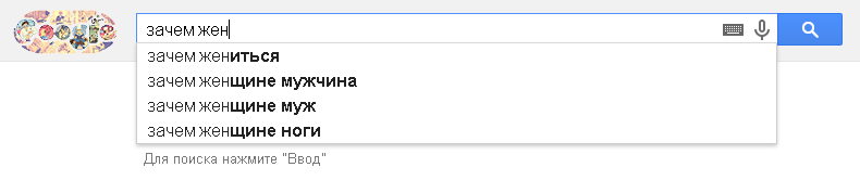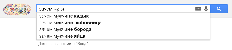 В интернете каждый ищет свое. Кому-то срочно требуются фотографии котят и позитивное видео с хохочущими младенцами, кто-то ищет ответы на философские вопросы и интересуется реформами. Согласно статистике поисковой системы Google, за прошедший год запросов со словом "женский" было в среднем наполовину больше, чем со словом "мужской". Пик запросов со словом "женский" пришелся на канун новогодних праздников. Вероятно, мужчины искали подарки.