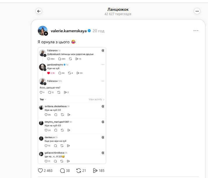 К Гордону присоединились и другие пользователи соцсети Threads, обматерив путиниста.