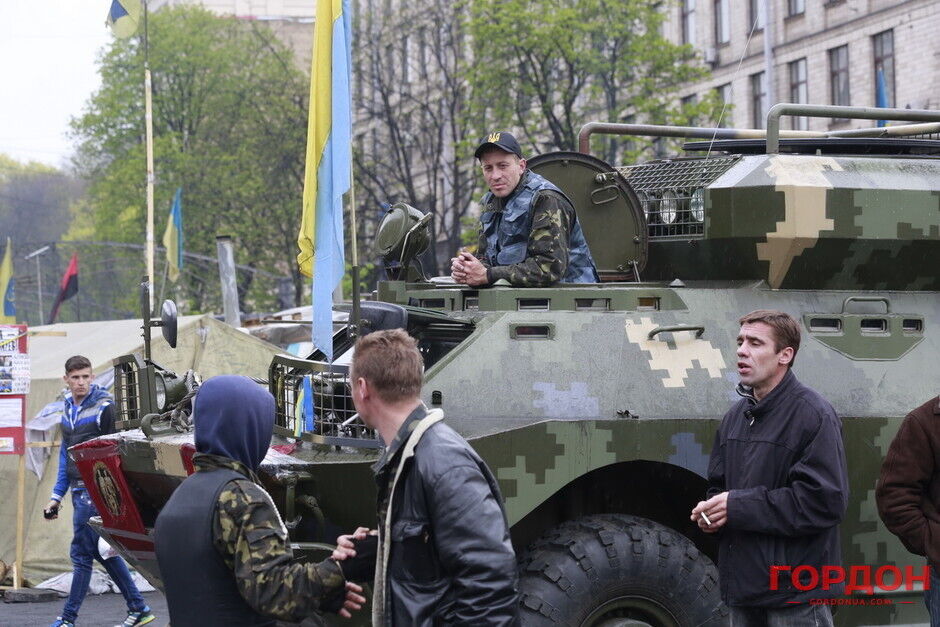 - 14 апреля – под Верховной Радой – протест с требованием отставки Турчинова и Авакова. Активисты зажигают шины и делают попытку штурма парламента, однако к ночи акция прекращается.