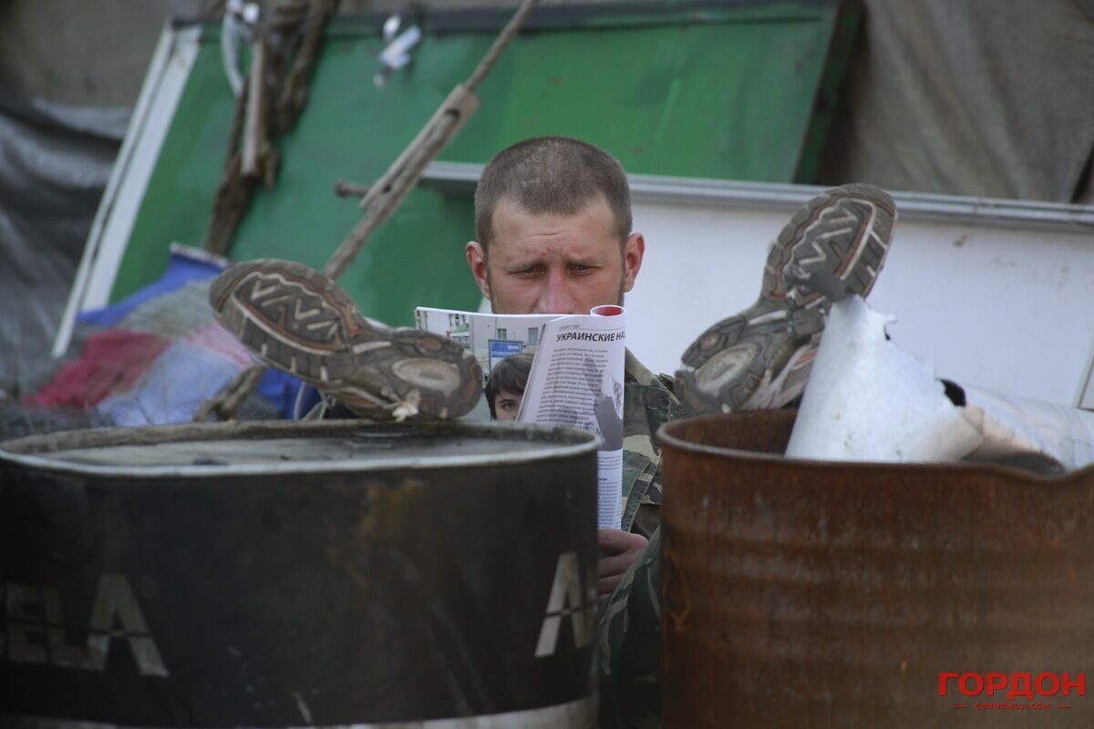 О том, что на уме у активистов, лучше всего говорят плакаты и объявления, во множестве расклеенные по территории городка. Путин, власть, революция, оружие – хоть военные действия далеко от Киева, на Майдане они тоже чувствуются.