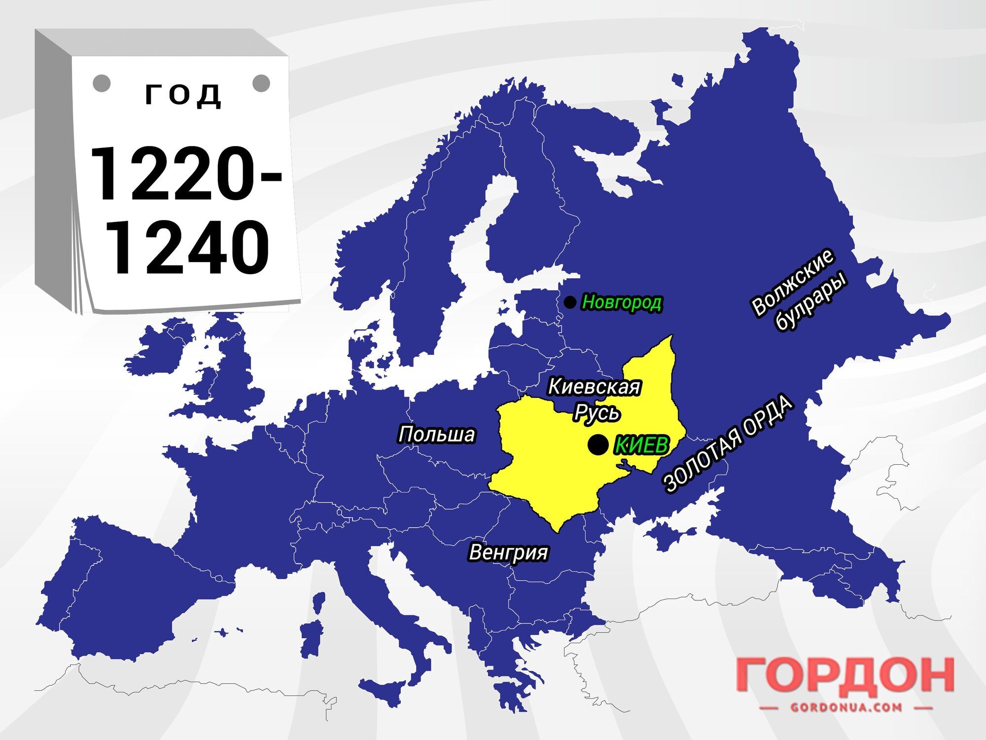 В битве с монголами на реке Калке (на территории современной Донецкой области 31 мая 1223) участвовали практически все южнорусские князья, многие из них, как и многие родовитые бояре, погибли. Победа досталась монголам. С ослаблением южнорусских княжеств усилился натиск венгерских и литовских феодалов, зато увеличилось и влияние князей в Чернигове, Новгороде, Киеве. В 1240 году монголы (под предводительством хана Батыя, внука Чингисхана) обратили Киев в руины. Город достался князю Ярославу Всеволодовичу, которого монголы признали главным, а затем – его сыну Александру Невскому. Но они не стали переводить стол в Киев, и остались во Владимире.