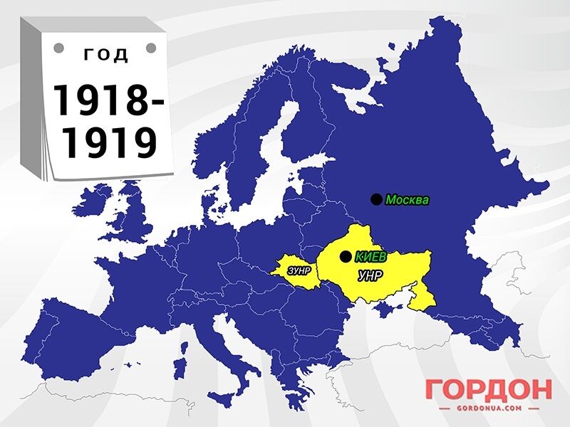 УНР была провозглашена Третьим Универсалом Украинской Центральной Рады 7 ноября 1917 года. Предполагалась широкая национальная автономия, федеративно связанная с Россией. Четвертый Универсал 22 января 1918 года провозгласил независимость УНР. А спустя год – 22 января 1919 года был провозглашен "Акт Злуки", объединивший Западно-Украинскую Народную Республику и УНР.
