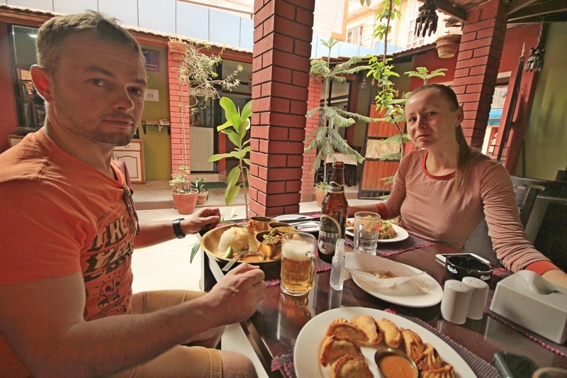Передо мной – дал-бат и местное пиво "Еверест". Кирилл момо не ест – фотографирует