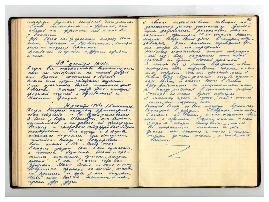 Наступает новый, 1945-й, год. Надеюсь, что он будет более хороший и принесет с собой мир. Сколько людей гибнет сейчас. В Будапеште идут бои в городе, приходится брать каждый дом. Наше правительство объявило ультиматум окруженным немцам и венграм: предложило сдаться со всем вооружением. Обещано сохранить жизнь, амуницию, чины, ордена. Ответ ждали до 12 часов 30.12. Когда наши парламентеры поехали на легковой машине с белым флагом, они убили по пути одного. Второй доехал к немцам, но немцы отказались принять ультиматум. На обратном пути он был убит. Спасся только один переводчик. Теперь мы снимаем ответственность с себя за разрушение Будапешта. Какой там сейчас ужас.