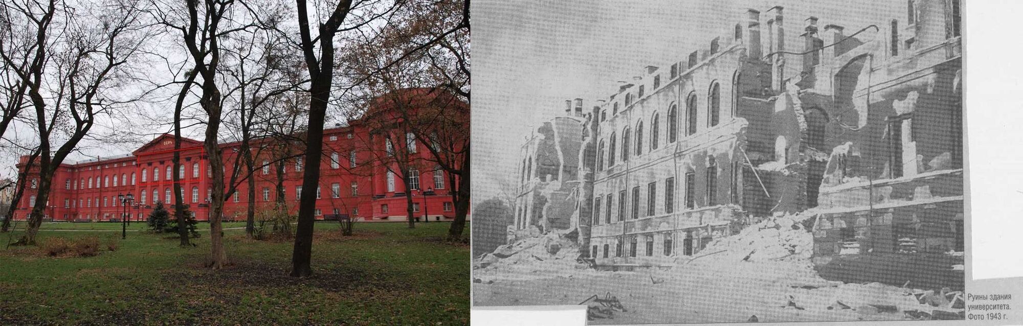 Прошла ужасная ночь. С вечера началась бомбежка. Я быстро потушила коптилку. Это было 9.40. Бомбежка продолжалась 3,5 часа. Слышалось гудение приближающегося самолета и взрывы. Взрывы без конца. Бросали яркие ракеты. Все было освещено, как днем. Взрывы раздавались из разных концов города. Разбомбили четыре улицы на Татарке. Разрушен КУ главный корпус, он еще сегодня горел. Разбиты дома на Никольско-Ботанической, там в подвалах и сейчас еще завалены люди.