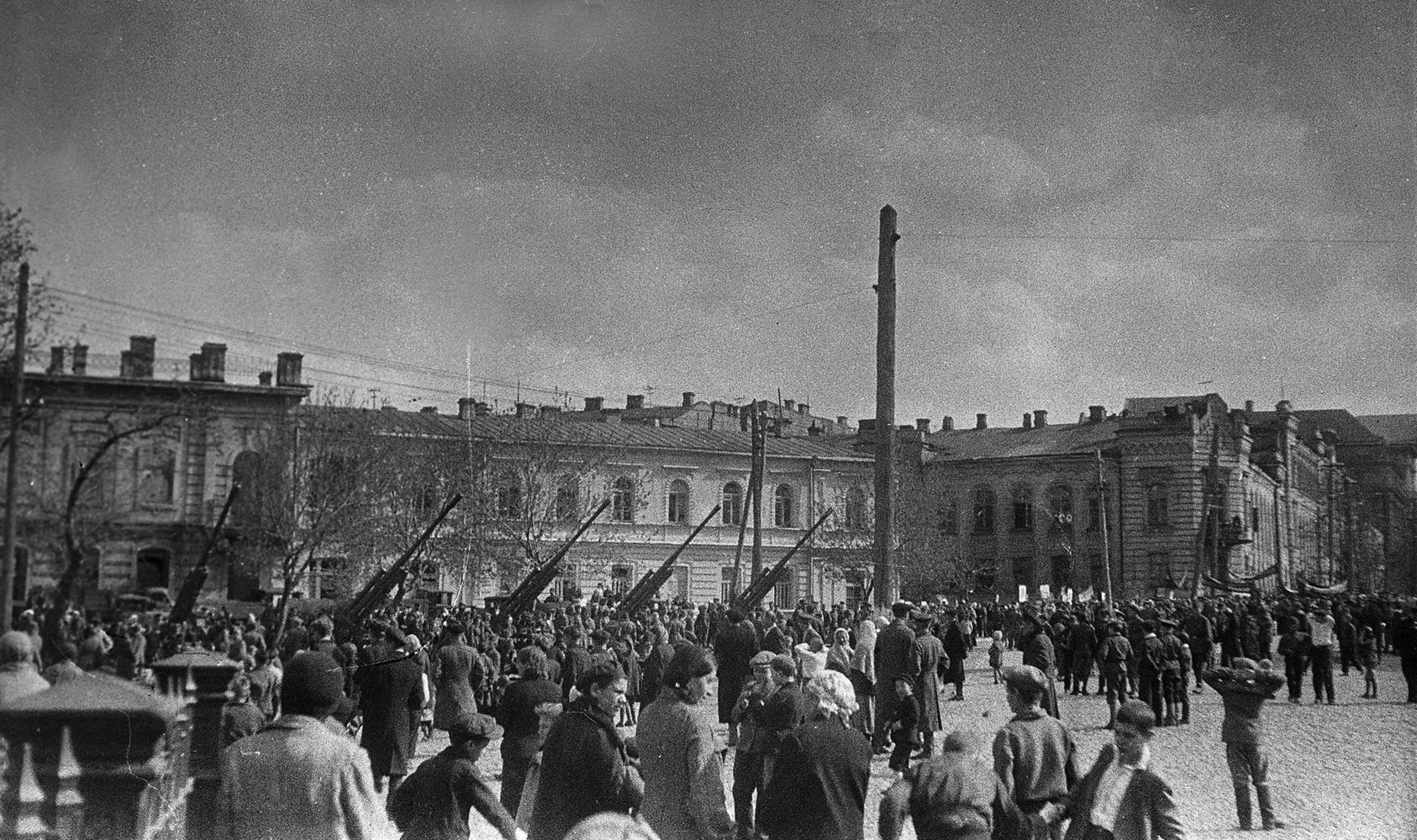 [IMAGE_DESCRIPTION]Киевляне на площади Богдана Хмельницкого 9 мая 1945 года.