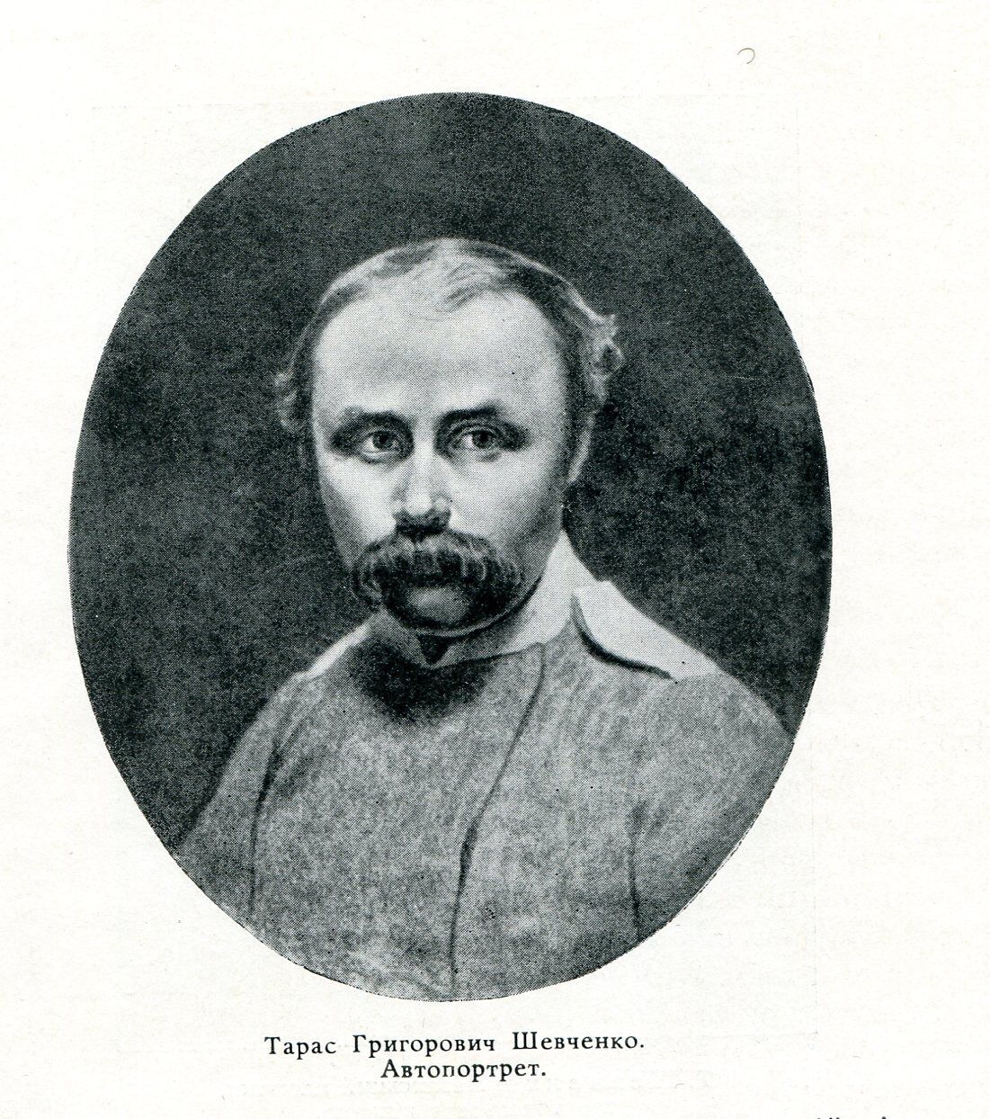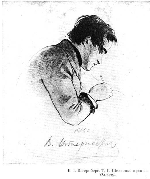 "Широкоплечий, приземкуватий Шевченко нагадував козака з помітними слідами салдатської муштри. Голова гострокутна, майже лиса, високе зморшкувате чоло, широкий так званий “качачий” ніс, густі вуса, що закривають вуста, невеликі сірі очі, що їхній погляд здебільшого понурий та недовірливий, – тепер він був ласкавий, майже ніжний, з гарною, доброю посміщкою, – голос трохи хрипкий, рухи спокійні, постать вайлувата й мало шляхетна”.