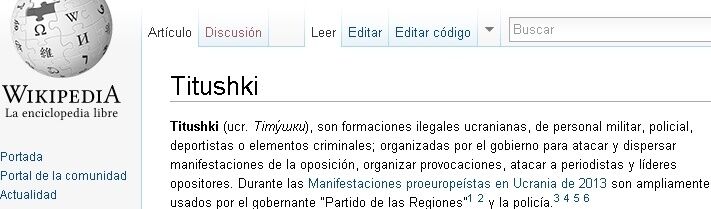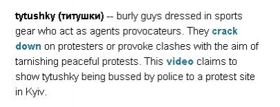 Определение слова titushki можно найти даже в испанской версии Wikipedia: