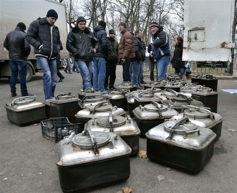 В Мариинский парк в Киеве в ноябре–декабре 2013-го титушек собирали колоннами. Как и в настоящей армии, этих "солдат" организованно кормят, транспортируют, и – раздают им приказы.