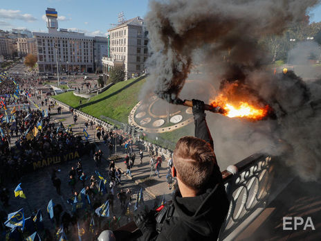 В Киеве прошел марш по случаю Дня защитника Украины, закончился он под Офисом президента