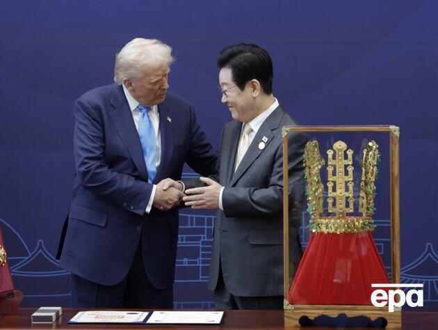 "Я хотел бы сразу надеть". Трампу в Южной Корее подарили орден и корону. Видео