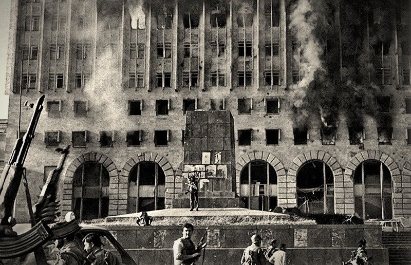 Це стоп-кадр останніх хвилин падіння Сухумі. 27 вересня 1993 року майже вся територія Абхазії перейшла під контроль сепаратистського уряду, який зміцнювали російські військові.