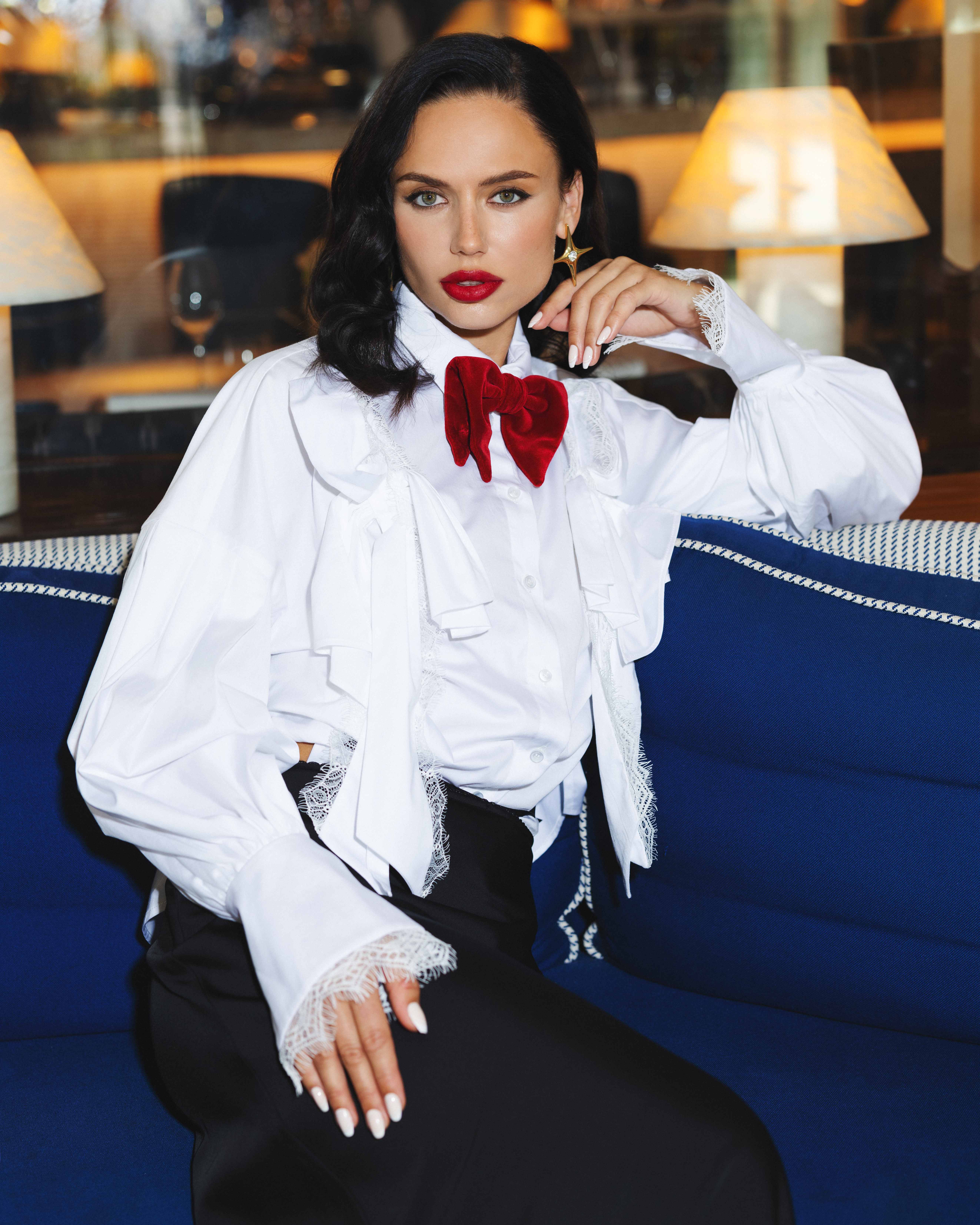 "Глибокий чорний символізує силу, стриманість і внутрішню гідність. Пристрасний червоний – колір життя, тепла й безмежного кохання. Чистий білий додає баланс. Разом вони створюють діалог, у якому народжується досконалість – як у двох серцях, що б'ються в унісон. Саме ці кольори роблять колекцію ідеальною для зустрічі року, який обіцяє бути динамічним і сповненим можливостей для сильних жінок", – зазначено у пресрелізі.