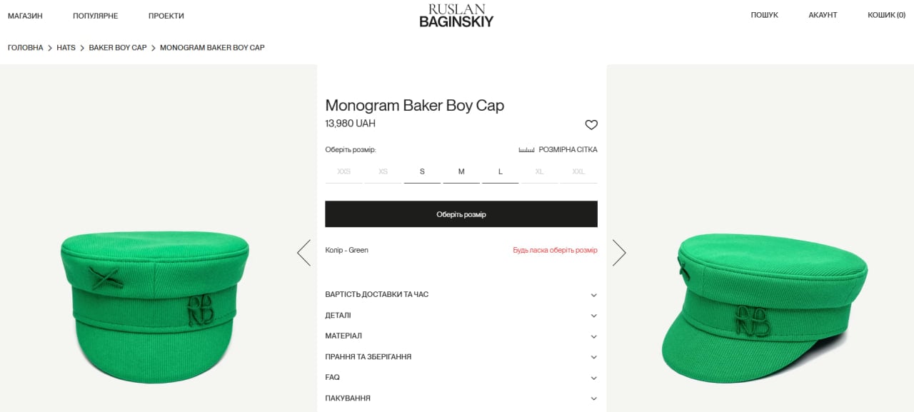 Вартість цього головного убору на сайті бренда становить майже 14 тис. грн.