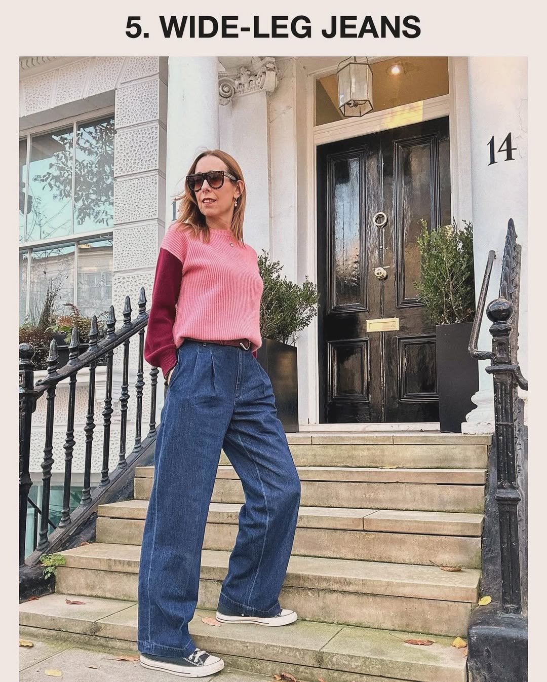 "Мені подобається андрогінний стиль штанів широкого крою, і я завжди стягую талію ефектним поясом, щоб створити чіткий силует. Вони не тільки надзвичайно зручні, але й мають такий самий розкішний вигляд із високими кросівками, як і з підборами", – поділилася блогерка.