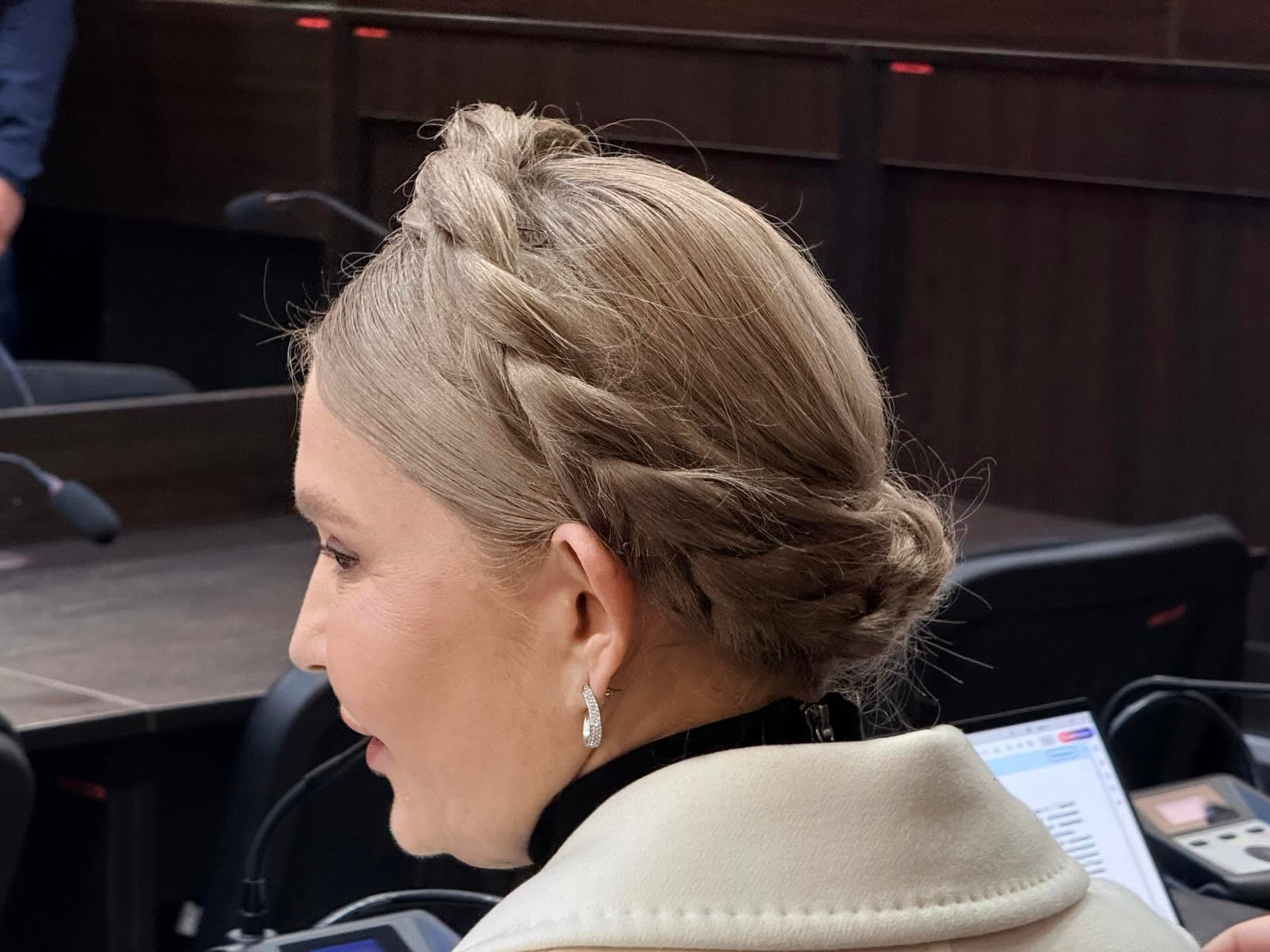 "Здається, це перука". Журналістка великим планом показала, який вигляд зі спини має коса Тимошенко. Фото