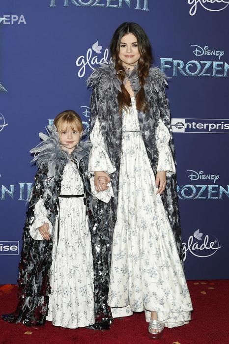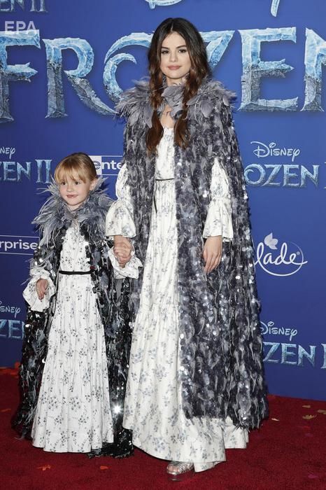 Американська співачка Селена Гомес відвідала прем'єру мультфільму "Холодне серце 2". Знімки опублікувало фотоагентство EPA. На заході співачка з'явилася з молодшою сестрою – шестирічною Грейсі Елліот. Вони вдягли однакові сукні й накидки з пір'я. Гомес і Елліот під час презентації поцілувалися перед камерами. Грейсі Елліот – сестра Гомес по матері: у них різні батьки.