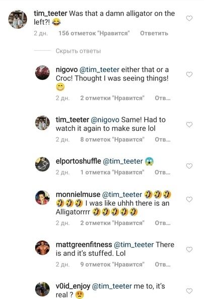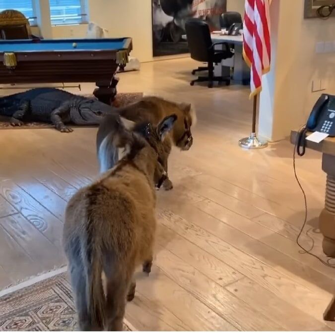 Підписників актора здивував не візит тварин, а присутність у приміщенні алігатора, який нерухомо лежав на килимі.