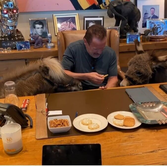Американський актор Арнольд Шварценеггер погодував тварин печивом і мигдалем у своєму офісі.