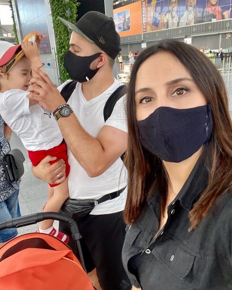 Співачка зазначила, що під час польоту вони дотримувалися маскового режиму, однак їхній старший син весь час намагався зняти з обличчя маску.
