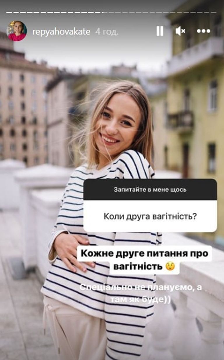 Дружина українського артиста Віктора Павліка, українська блогерка Катерина Репяхова 29 листопада, відповідаючи на запитання в Instagram Stories, заявила, що кожне друге адресоване їй запитання було про нову вагітність.
