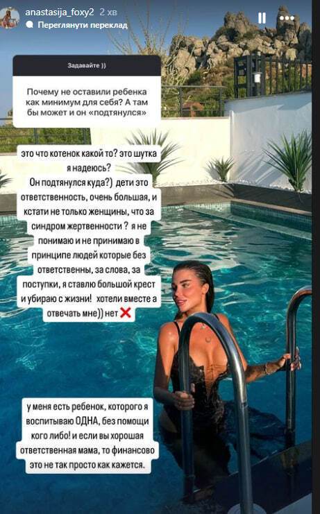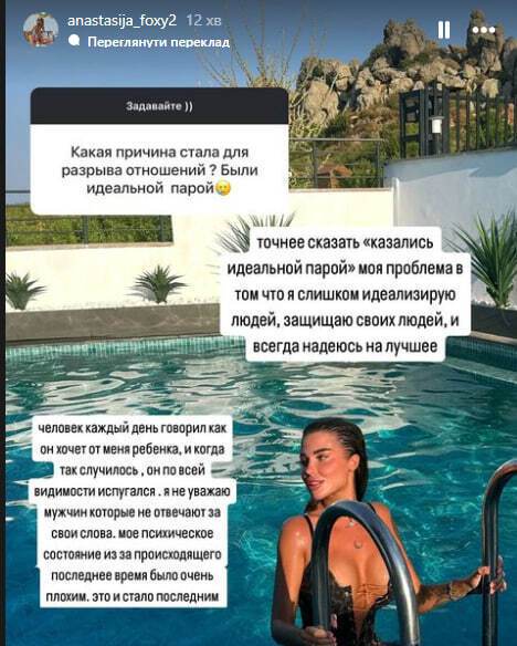 29-річна українська модель Анастасія Foxy 16 липня в Instagram Stories повідомила, що розійшлася зі своїм бойфрендом, 46-річним українським бізнесменом турецького походження Муратом Налчаджиоглу.
