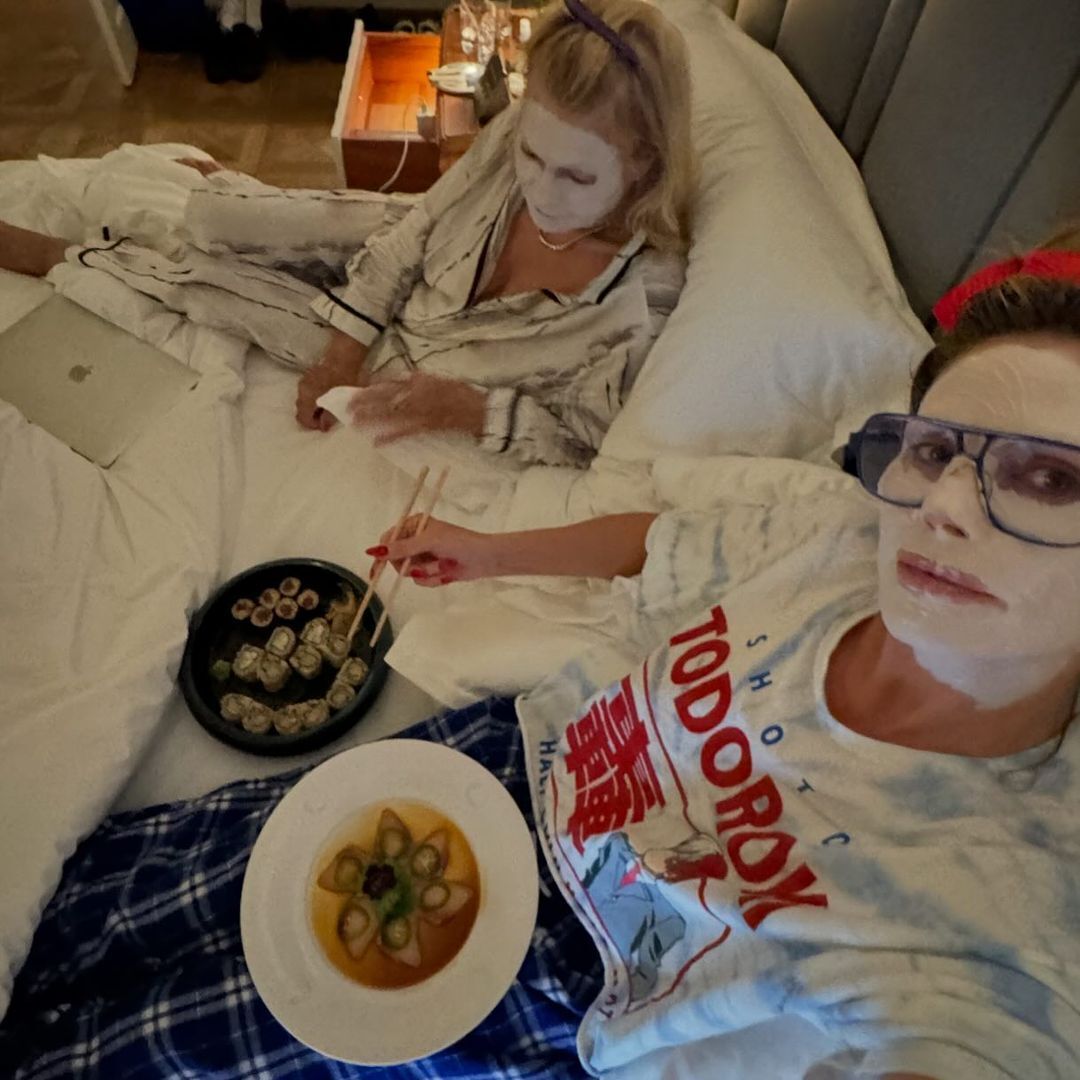 Супермодель знялася, лежачи в ліжку під ковдрою поруч зі своєю мамою. Обидві вони постали з косметичними масками на обличчях.