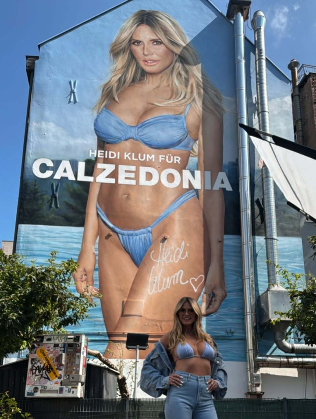 Клум знялася в автомобілі. Вона пояснила, що їде на зйомку для італійського бренда Calzedonia. Клум є амбасадоркою цієї марки, яка випускає колготки, панчохи, білизну й купальники.