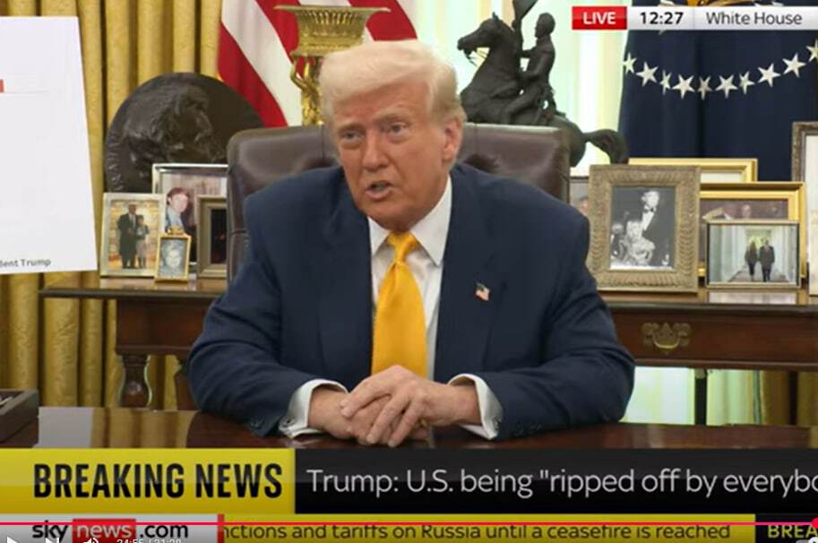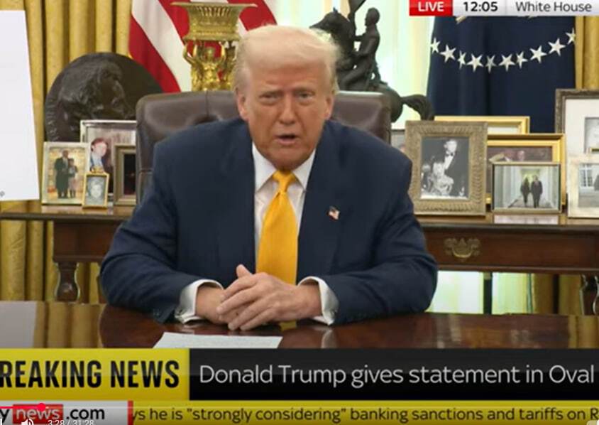 Президент США Дональд Трамп 7 березня під час брифінгу в Білому домі постійно прикривав свою праву руку, на якій тиждень тому був величезний синець, своєю лівою рукою. Трансляцію брифінгу опублікували на YouTube-каналі телеканала Sky News.