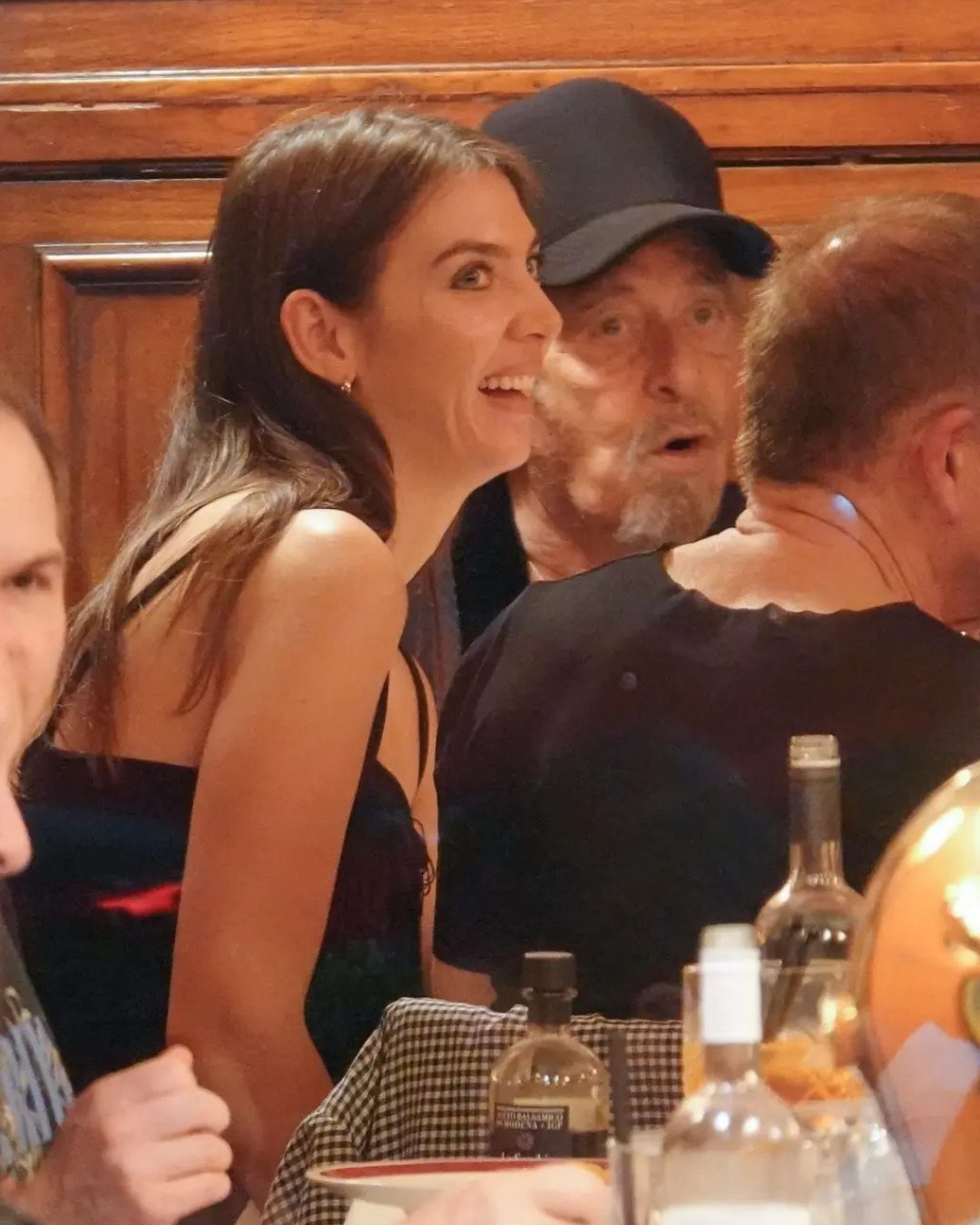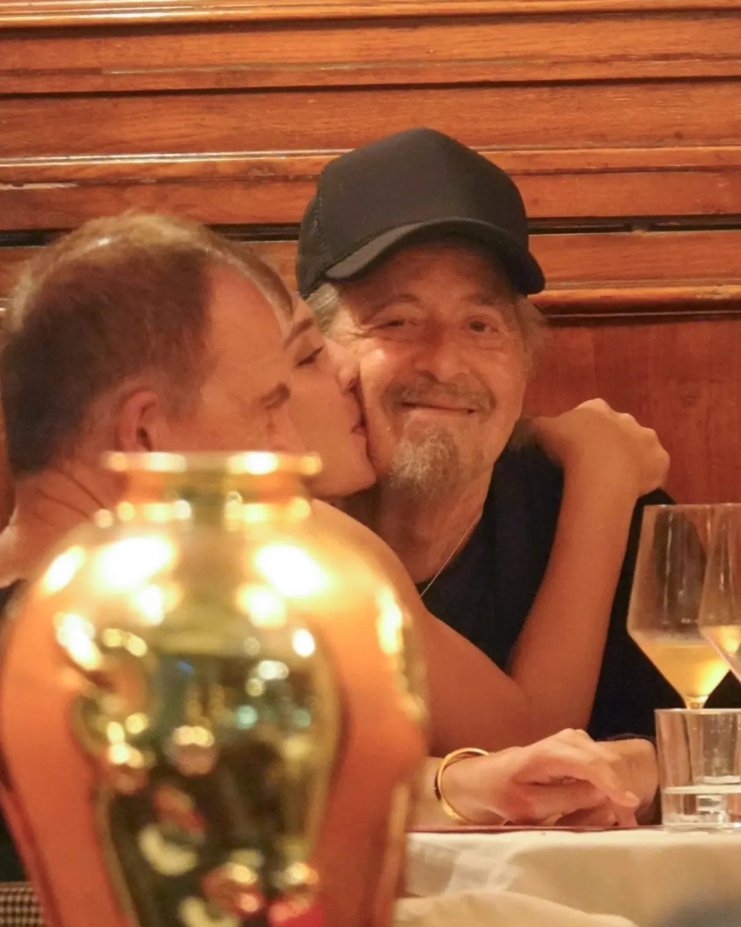 На світлинах видно, що одягненого в чорне 85-річного Пачіно журналістка цілує у щоку й обіймає.