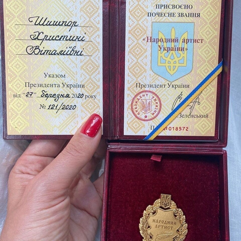 Шишпор також опублікувала фото документа про присвоєння звання, у якому йдеться про те, що президент України Володимир Зеленський підписав відповідний указ 27 березня 2020 року.