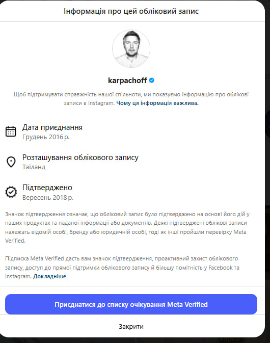 В інформації на Instagram-сторінці Карпачова зазначено, що блог він веде з Таїланду. Сам Карпачов не коментував свого місця перебування, але ще 2023 року український співак Dantes запідозрив, що психолог покинув Україну.