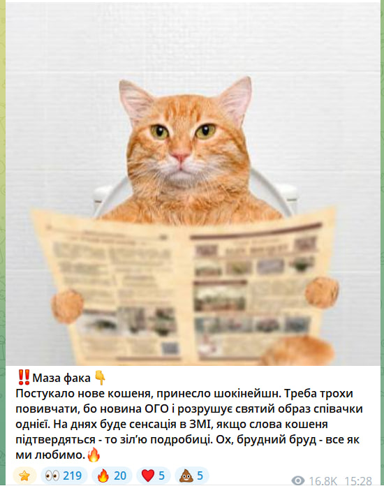 Блогер уточнив, що спілкувався з людиною, яка озвучила йому цю інформацію, телефоном. За словами співрозмовника, Тарас Тополя фінансував кар'єру своєї дружини.