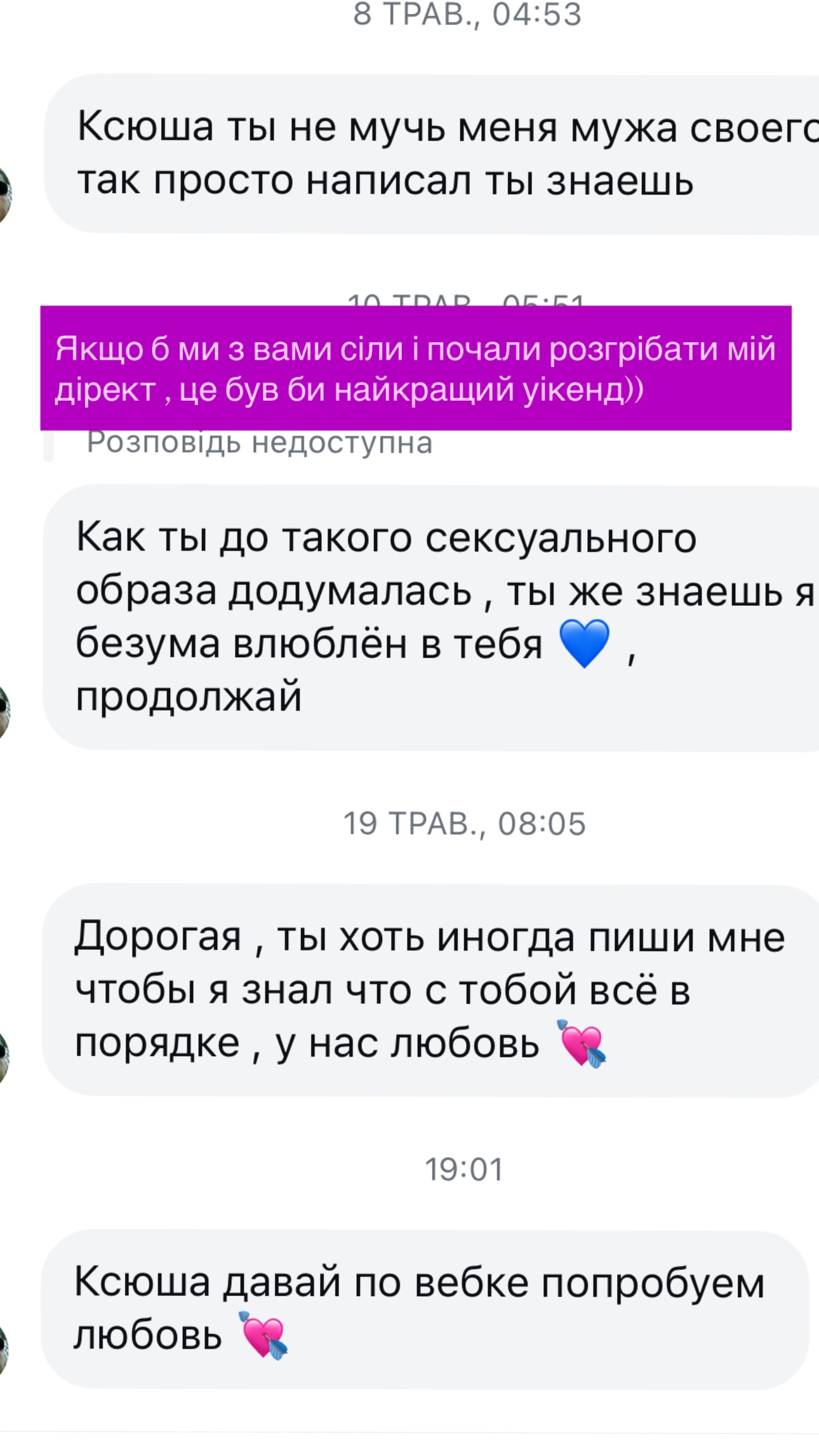 Ще в одному повідомленні чоловік просить Мішину відповідати йому, адже в них, як він стверджує, кохання.