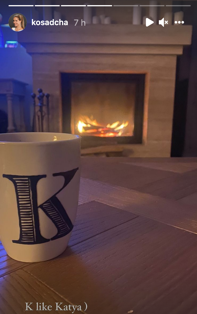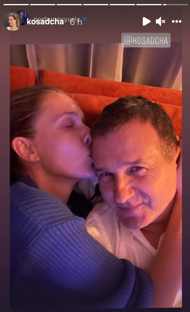 На наступних фото Осадча знялася зі своїм чоловіком – продюсером та телеведучим Юрієм Горбуновим. Пара сидить біля каміна, робить селфі, обіймається і цілується.