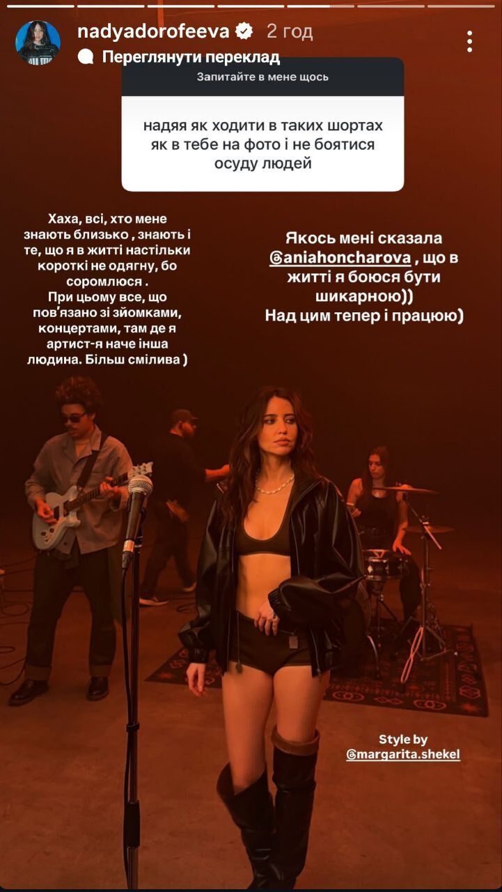 Українська співачка Надя Дорофєєва 15 червня, відповідаючи на запитання підписників в Instagram Stories, розповіла, якому одягу віддає перевагу поза концертним життям.