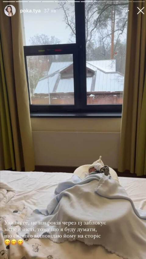 Сторінку Полтавської закрито для перегляду, але фото з її пабліка опублікувала редакція ТСН. На знімку сина Остапчуків зображено під час сну в колисці, розташованій на ліжку.