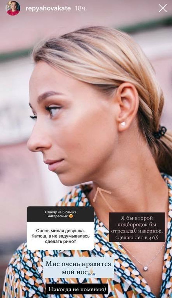 "Мені дуже подобається мій ніс. Ніколи не змінюватиму", – заявила Репяхова.