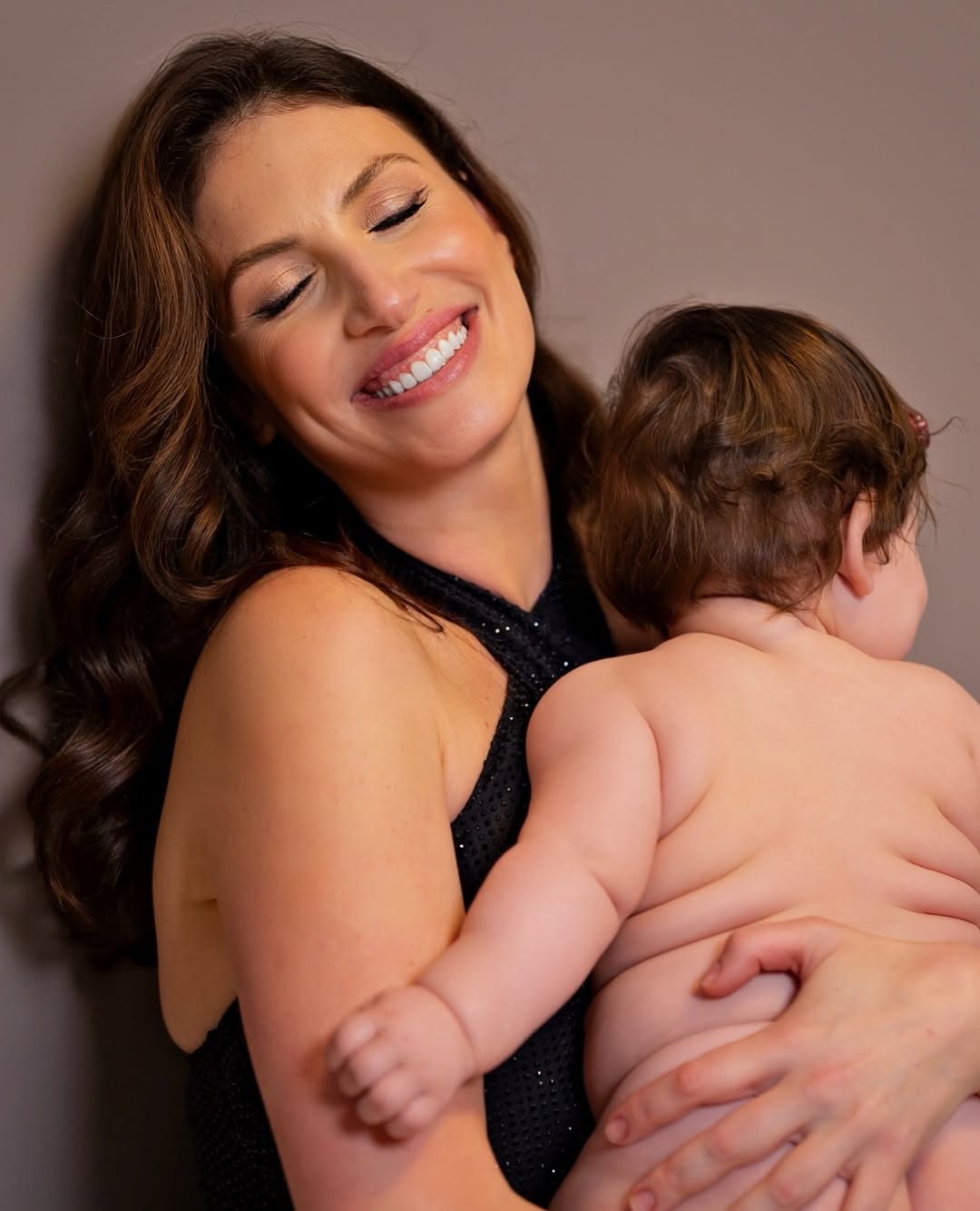 39-річна дружина 64-річного українського бізнесмена Сергія Тігіпка, блогерка Алла Зіневич-Тігіпко 1 квітня в Instagram розмістила кадри студійного фотосету з маленькою донькою на руках.
