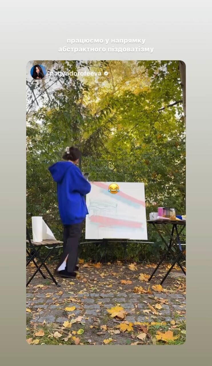 Український ресторатор Михайло Кацурін в Instagram Stories 17 жовтня оприлюднив добірку знімків, на яких показав, як писав картину разом зі своєю коханою, українською співачкою Dorofeeva (Надею Дорофєєвою).