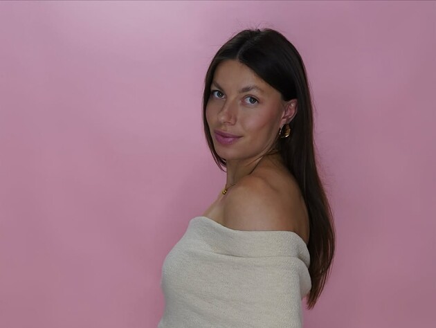 Вона знялася з легким макіяжем на обличчі, в оливковому светрі, блакитних джинсах і з масивними прикрасами із жовтого металу.