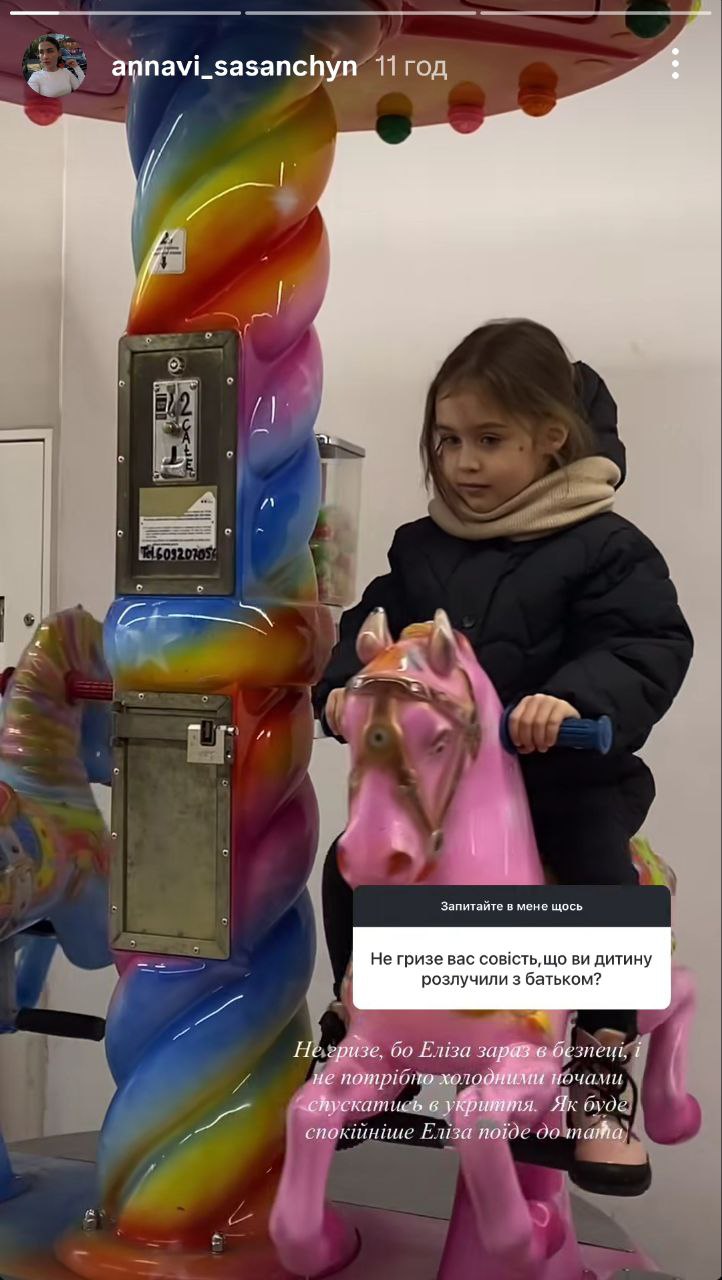 Колишня дружина українського співака Романа Сасанчина Іванна Сасанчин, відповідаючи на запитання підписників в Instagram Stories 3 грудня, розповіла, що не шкодує про переїзд із дочкою за кордон.