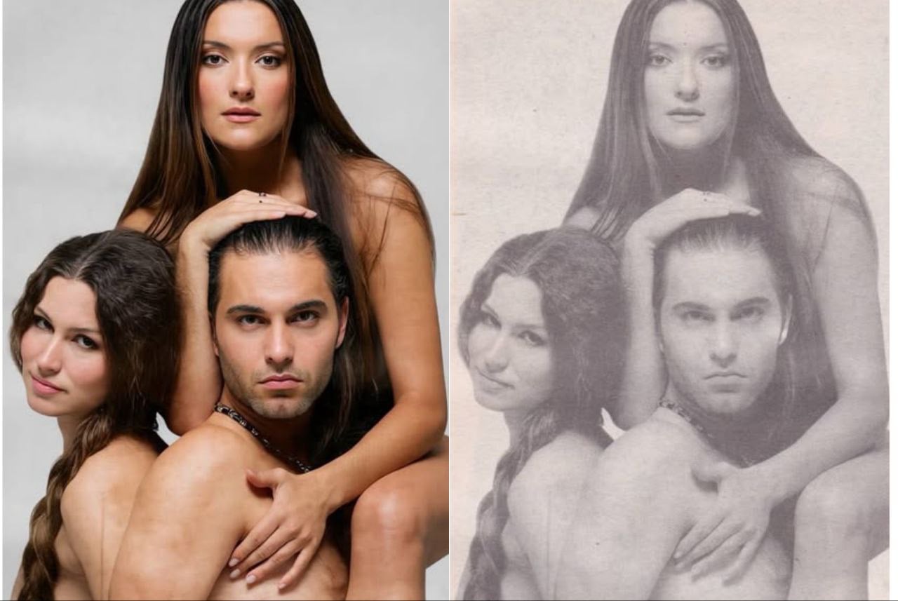 На фото EL Кравчук сидить, торкаючись з Лузіною спинами, а над ним стоїть Могилевська, яка обійняла артиста за голову. Усі троє друзів позують оголеними.