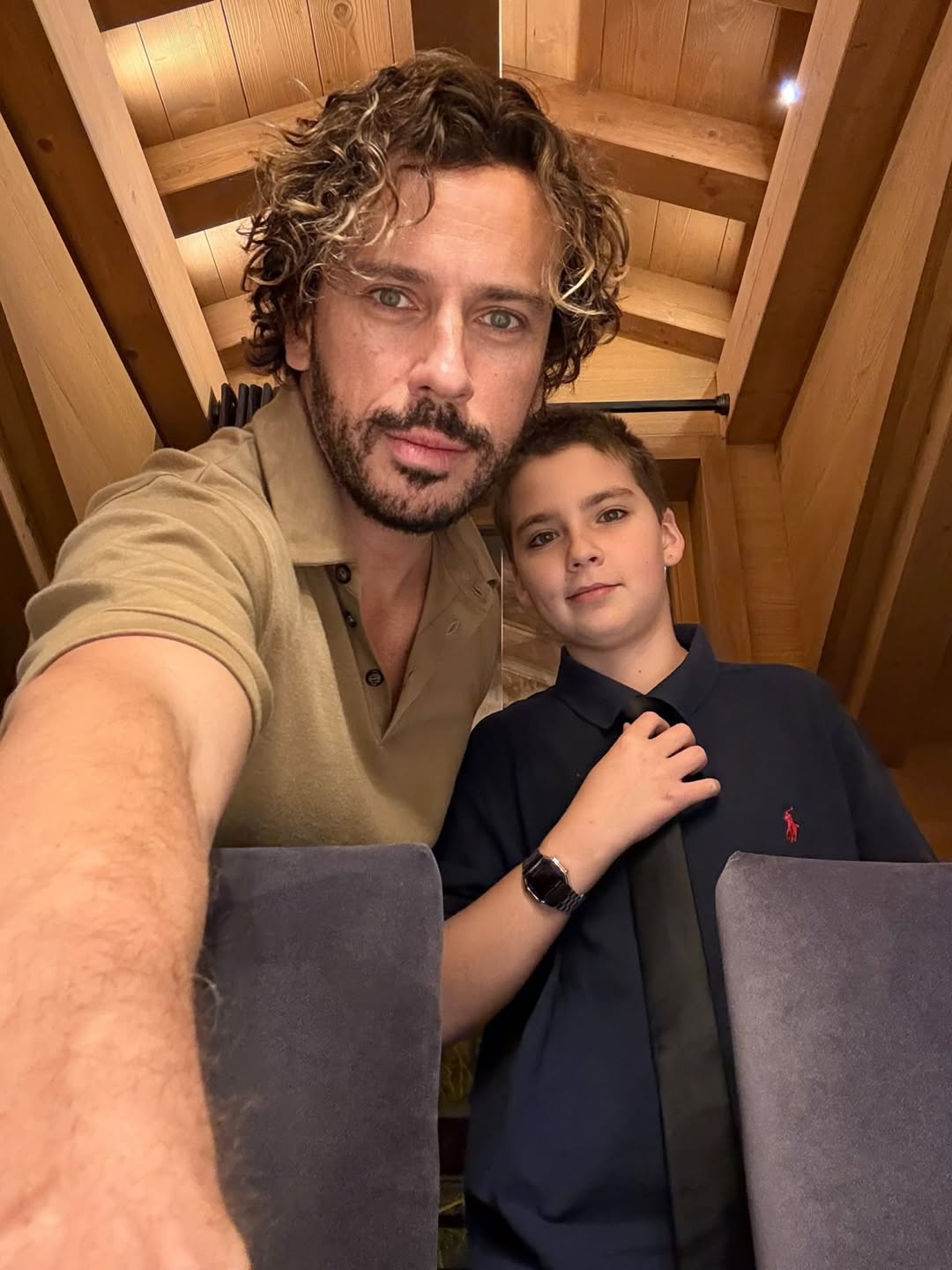 На одному з фото Галкін із сином позують у кімнаті з великим сервірованим столом, імовірно, перед приходом гостей.