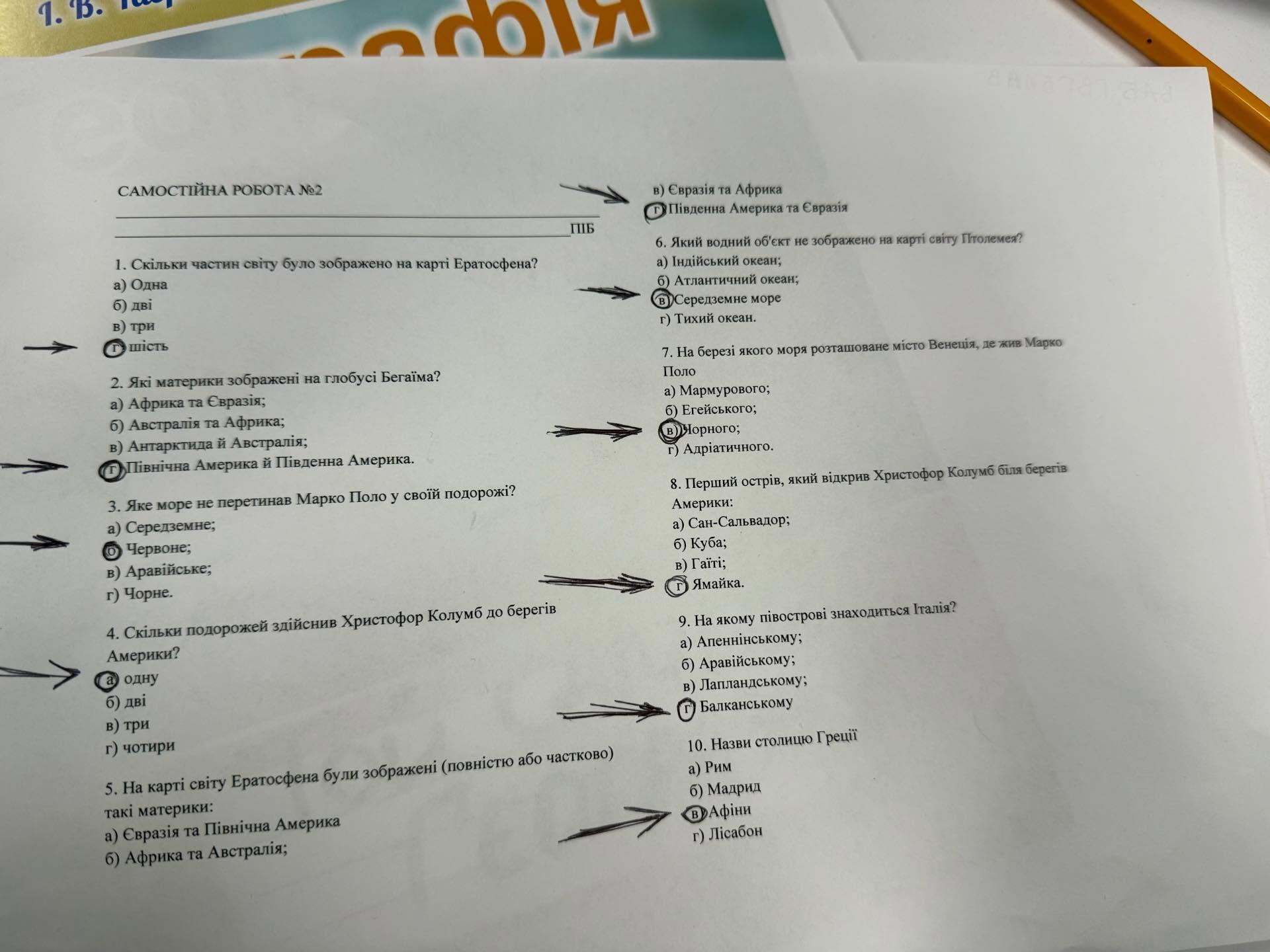 Наприклад, на 10-те запитання відповідь була правильною, а на перше і друге – ні.