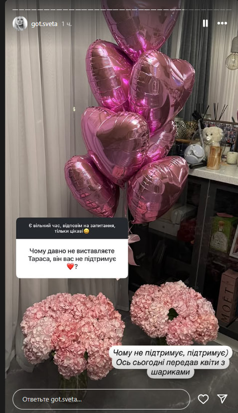 Українська бізнесвумен Світлана Готочкіна 2 лютого в Instagram Stories прокоментувала стосунки зі своїм колишнім бойфрендом, українським актором Тарасом Цимбалюком.