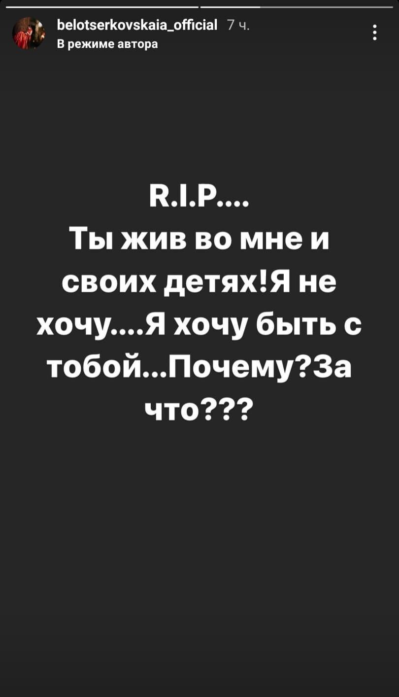 "R.I.P. Ти живий у мені та своїх дітях. Я не хочу... Я хочу бути з тобою... Чому? За що?" – написала вона.